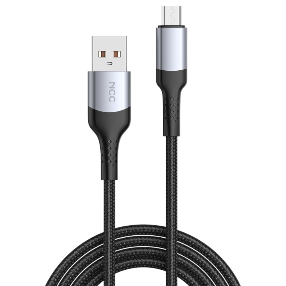 Charging Sync Cable NCC USB-A TO Micro-USB (D121AM|1.2M), Nylon&Alu, black/silver (Retail/Blister)