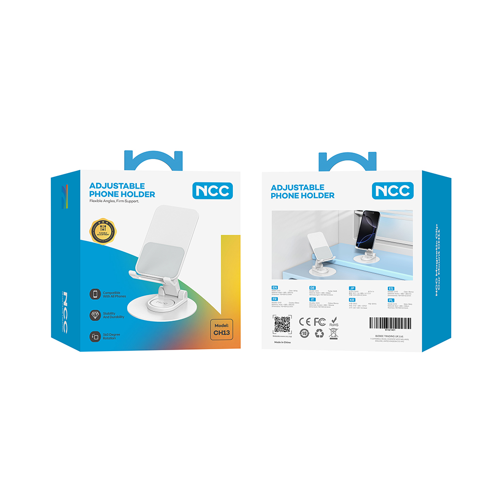 [Pre-Order] Desktop Holder Smartphone Halterung NCC CH13 (Foldable|360°), white (Retail/Blister)