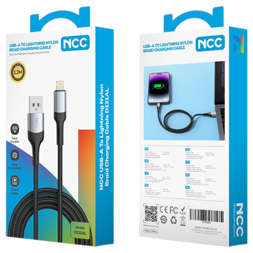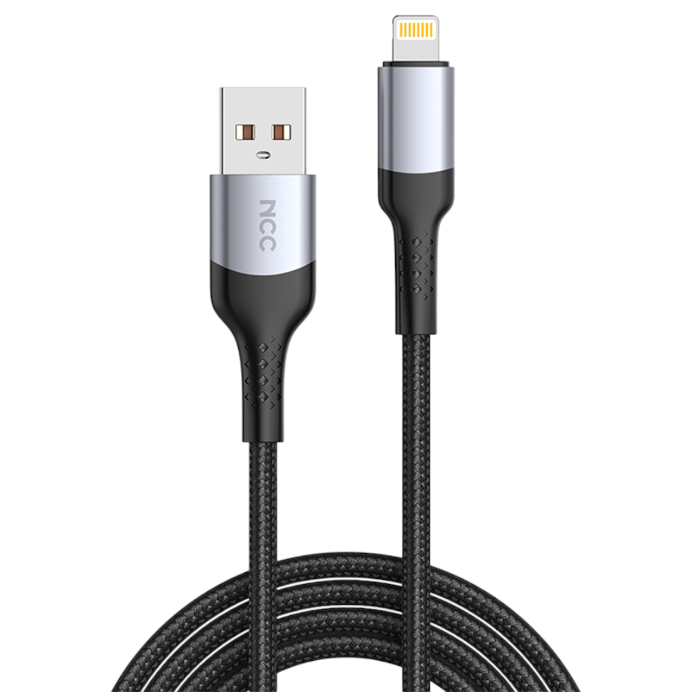 Charging Sync Cable NCC USB-A TO Lightning (D121AL|1.2M), Nylon&Alu, black/silver (Retail/Blister)