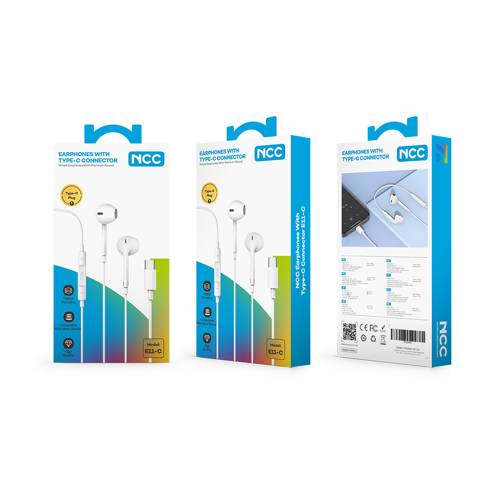 [Pre-Order] Kopfhörer Headset NCC Earphones (HIFI|E11-C|Typ-C), 120cm, white (Retail/Blister)